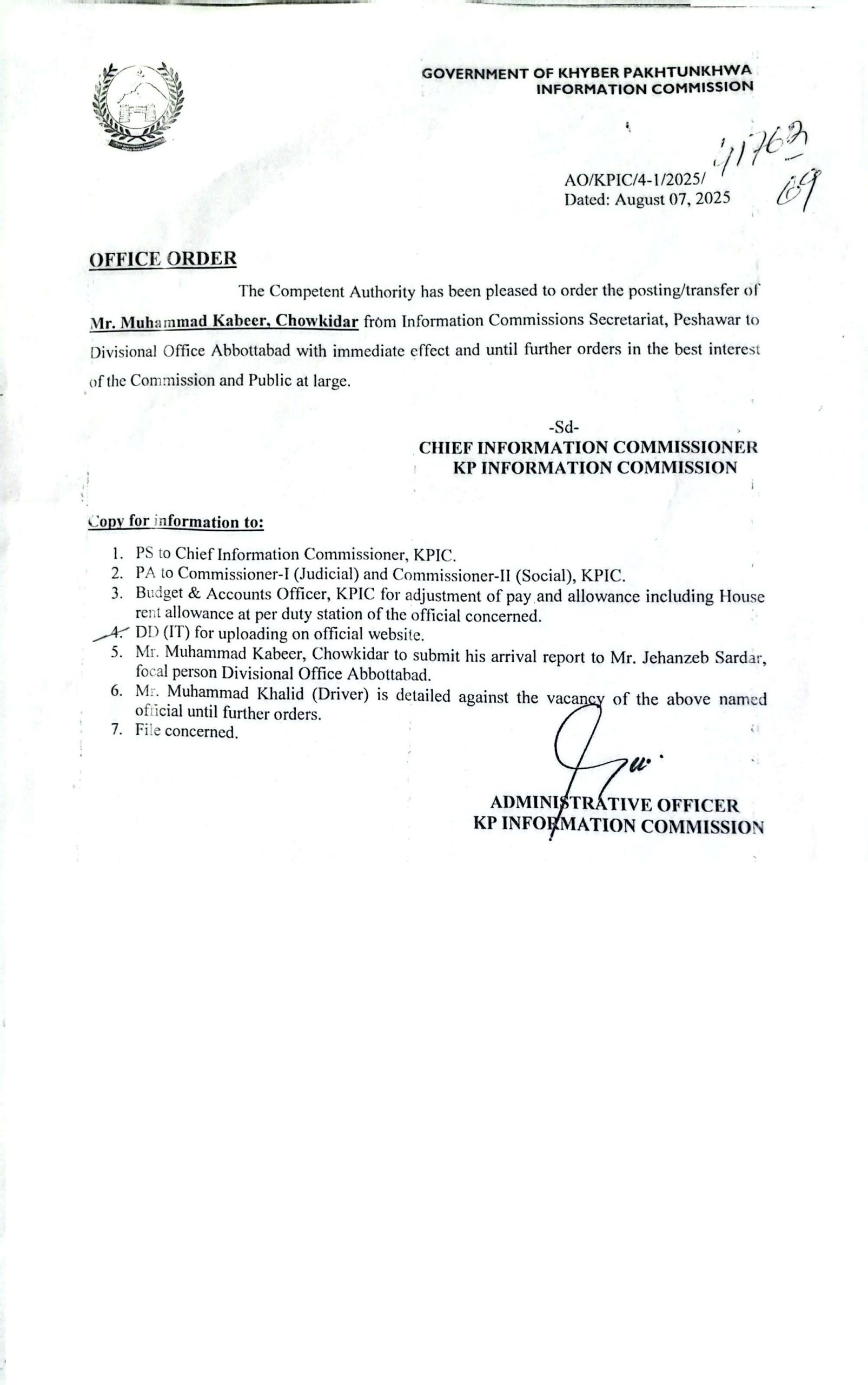 7 | KP Information Commission & Khwendo Kor | 15-Nov-22 |
